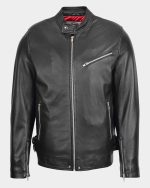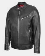 Mens Leather Cafe Racer Casual Biker Jacket Gerard Nova Black made from supple Sheep Nappa Leather. Mens Leather Cafe Racer Casual Biker Jacket Gerard Nova Black is lightweight, smart and can be worn either smart or casually. This jacket highlights Three front zip pockets, zips on the sleeves.