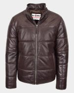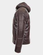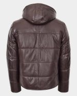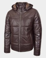 Mens Leather Hooded Puffer Jacket Zenith Brown
