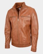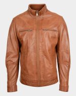 Men’s Standing Collar Leather Jacket Tony Dynamo Tan